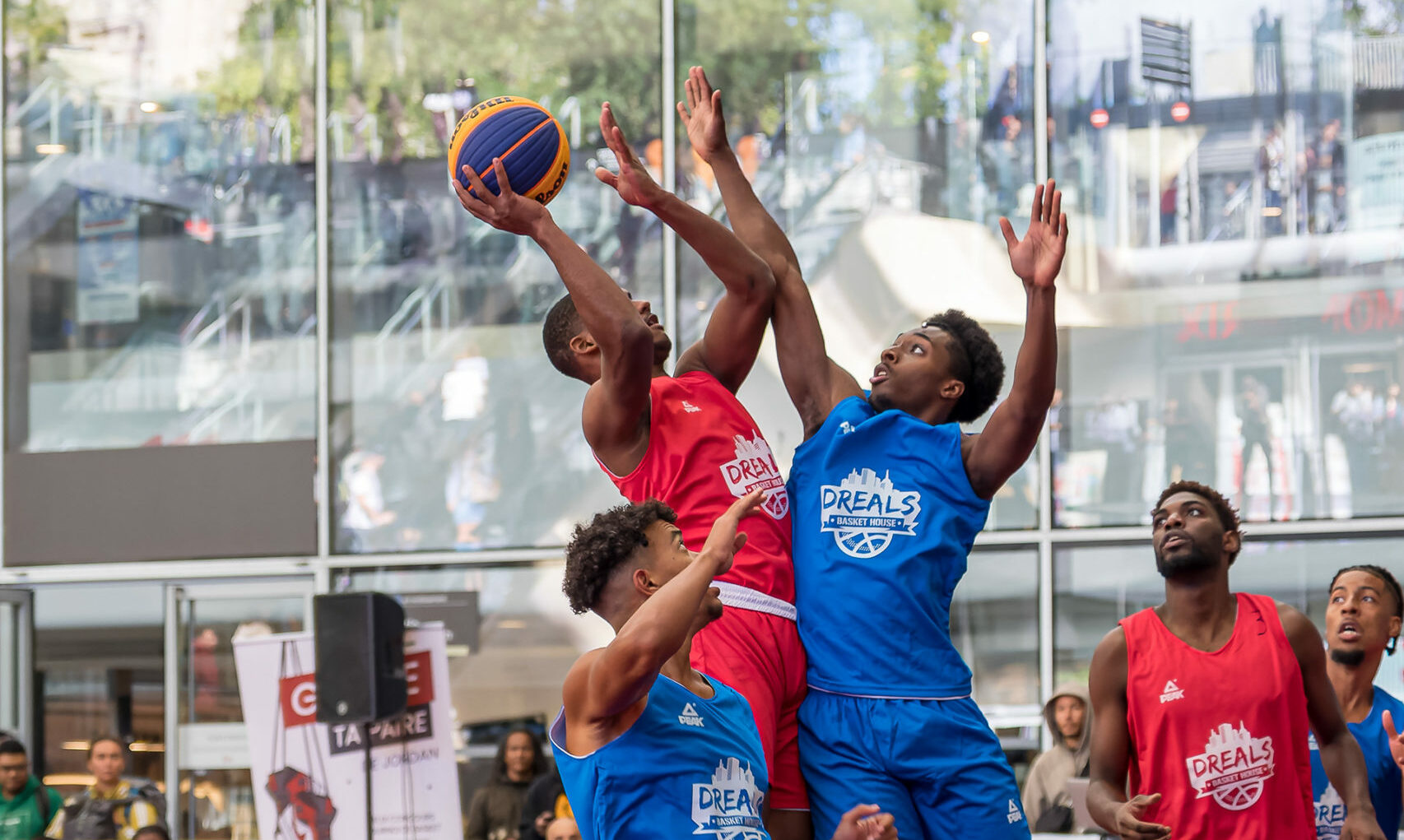 Les athlètes se regroupent en équipes et participent d’un pays à un autre à des tournois 3×3